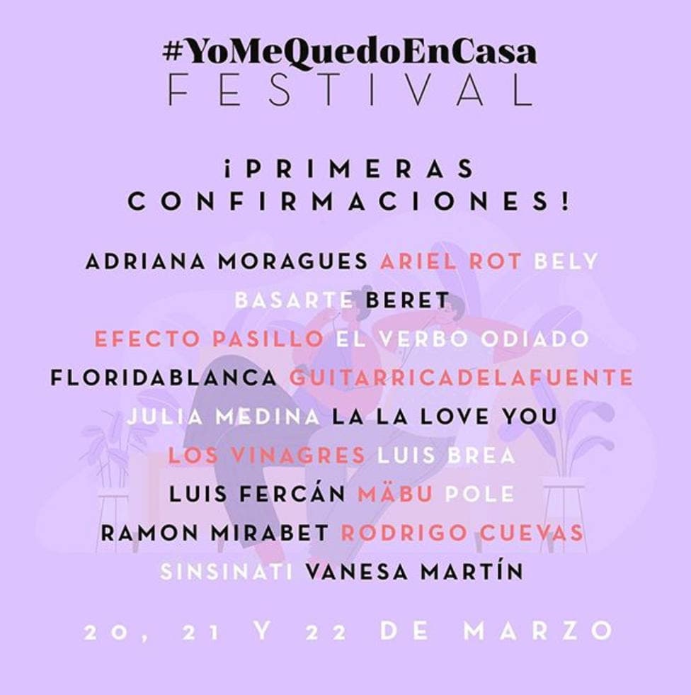 Durante los días 20, 21 y 22 de marzo se volverá a celebrar esta gran iniciativa musical #YoMeQuedoEnCasaFestival que reúne a un gran número de artistas en directo.